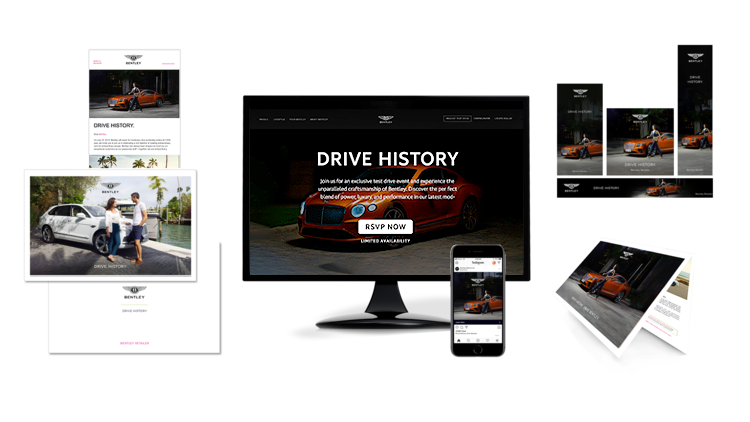 Overview of digital and print assets created for Bentley’s “Drive History” campaign rollout.